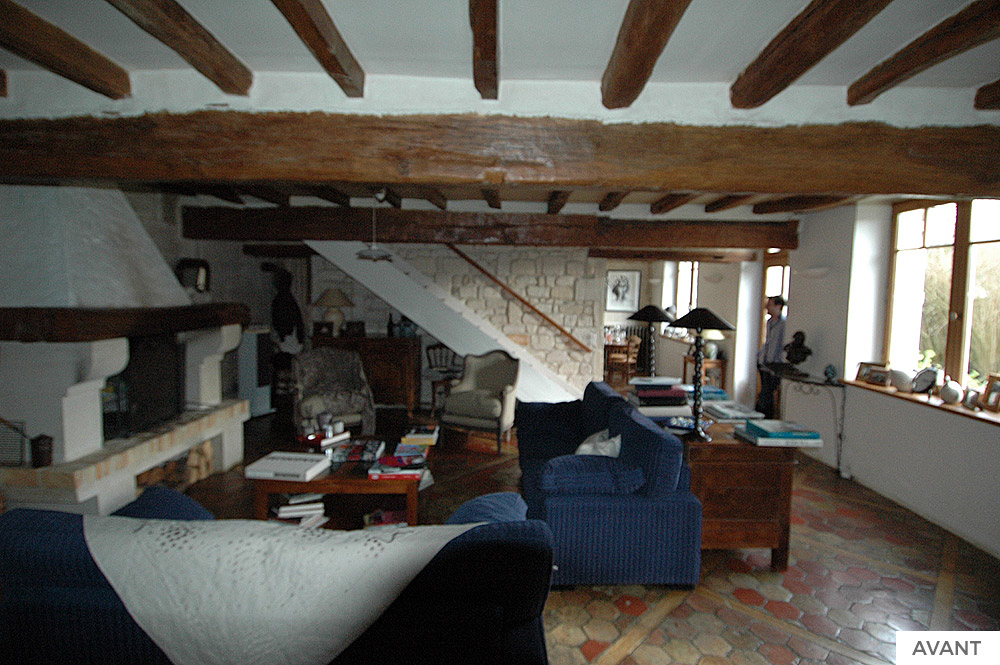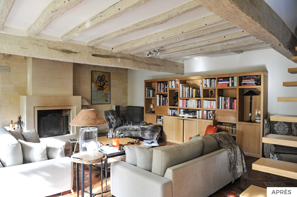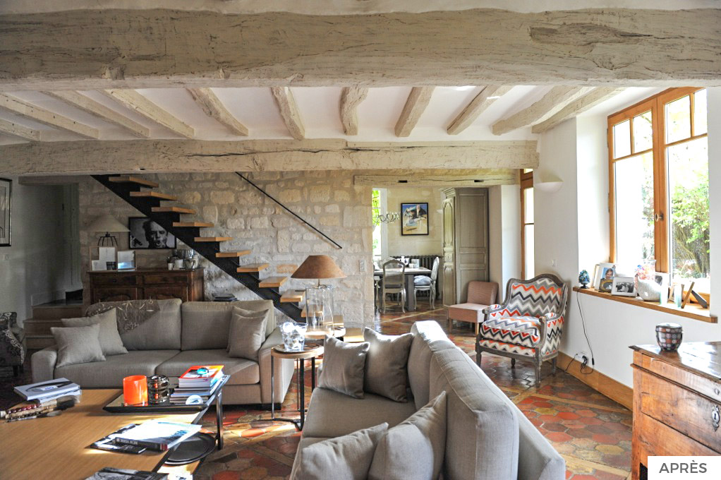 Réaménagement et décoration pour la création d’une ambiance chaleureuse et lumineuse pour cette maison typique des villages de forêt. Préservation et valorisation des matériaux d’origine auxquels ont été intégrés des éléments contemporains assurant un mix de modernité et de tradition.